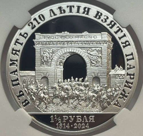 В рамках проекта Монетное дело Санкт-Петербургский монетный двор отчеканил памятный монетовидный жетон, выпуск которого приурочен к 210-летию вступления русских войск в Париж.