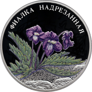 Серебряная монета 2 рубля "Фиалка надрезанная" 2022г., 15,55 г. 925 проба, ПРУФ