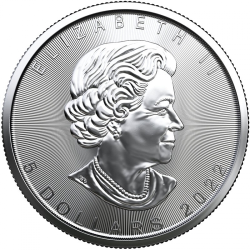 Аверс: В центре - рельефное изображение кленового листа. По окружности надписи: CANADA (Канада), характеристика металла 9999 FINE SILVER 1 OZ ARGENT PUR (чистое серебро 999 пробы, масса монеты 1 унция = 31,10 гр.).