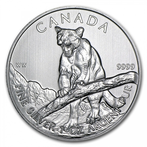 Серебряная монета Канады 5 долларов "Пума" 1oz, 31,1г.,Ag 9999, 2012 год