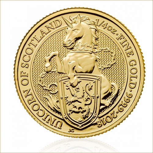 Золотая монета 25 фунтов "Единорог" Великобритания 1/4 унции 2017г