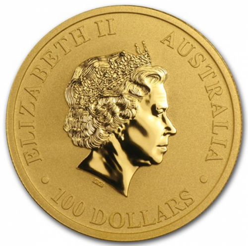 • Золотая монета Австралии Лунар I "Год Кролика" весом в 1 унцию.